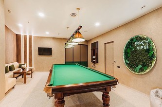 Самая большая комната в нашем комплексе включает в себя настоящую русскую баню на дровах с панорамным видом. VIP SKY 5 оснащена парилкой, купелью, зоной отдыха, бильярдным столом и комнатой отдыха.